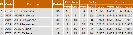 27 Mar. - AD Povoação 0 x 3 CD Marienses (11-25, 22-25, 15-25)