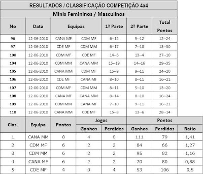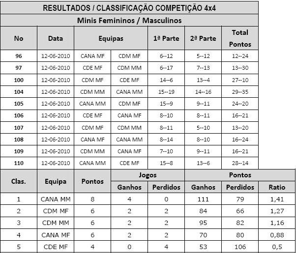 Classificação: 1º - CD Escolar, 2º - Clube Ana