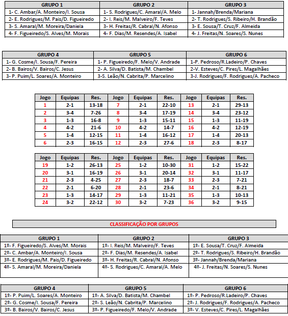 E. Sousa/T. Cruz/F. Almeida 18 x 17 G. Cosme/I. Sousa/F. Pereira