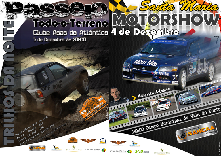 A secção de Automobilismo e Karting do Clube Asas do Atlântico leva a efeito mais uma prova “ Santa Maria Motorshow 2010” dia 4 de Dezembro. Esta é uma prova espectáculo e tem como principal objectivo brindar o público mariense, pela receptividade que demonstrou ao longo deste ano no que se refere as actividades desenvolvidas pela Secção de Automobilismo do Clube Asas do Atlântico. Esta prova ir ter o seu desenvolvimento no Campo Municipal de Vila do Porto pelas 14 horas, conta com a presença de muitos pilotos locais mas o principal destaque vai para a presença de Campeão de Ralis dos Açores Ricardo Moura da “Além Mar”, principal patrocinador da Taça de Ralis de Santa Maria. A chegada do passeio Todo-o-Terreno “Trilhos da Noite”, (última prova do campeonato de Todo-o-Terreno de Santa Maria) irá dar inicio ao evento, seguido dos restantes participantes. Com este evento a Secção de Automobilismo do Clube Asas do Atlântico encerra o seu plano de actividades para o ano de 2010.