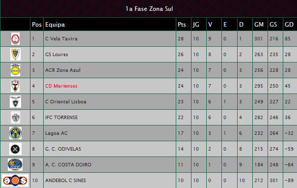 Com este resultado e atendendo ao empate do Clube Oriental de Lisboa frente ao Lagoa AC, o Clube Desportivo "Os Marienses" ascendeu à 4ª posição, totalizando 24 pontos.