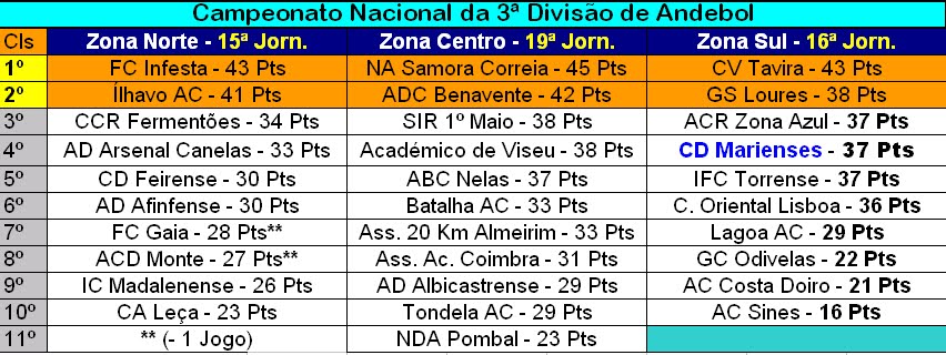 O Clube Desportivo "Os Marienses" voltou à condição de dependente de terceiros para tentar conseguir o apuramento para a Fase Final da 3ª Divisão de Andebol. Isto porque na deslocação efectuada este Sábado ao reduto do Independente Futebol Clube Torrense, outra das equipas candidatas, a formação orientada por Pedro Resendes não conseguir somar três pontos e perdeu por 26-25.