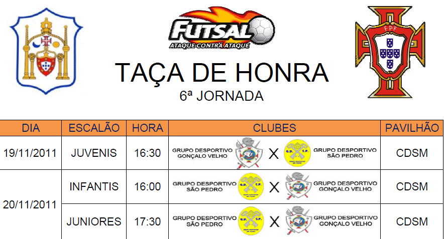 19 Nov. - 16h30 - Futsal - GD Gonçalo Velho x GD São Pedro - Juv. M