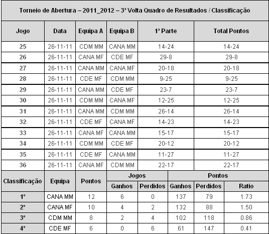 26 Nov. - CD Marienses 3 x 0 Clube Ana S. Maria (25-19, 25-13, 25-8)