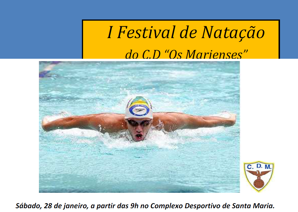 O Complexo Desportivo de Santa Maria recebe no próximo dia 28 de Janeiro a partir das 09h, o I Festival de Natação do Clube Desportivo "Os Marienses". São esperados cerca 60/70 atletas do CD Marienses e CD Escolar. Esta iniciativa conta com o apoio da Câmara Municipal de Vila do Porto e da SDMSA.