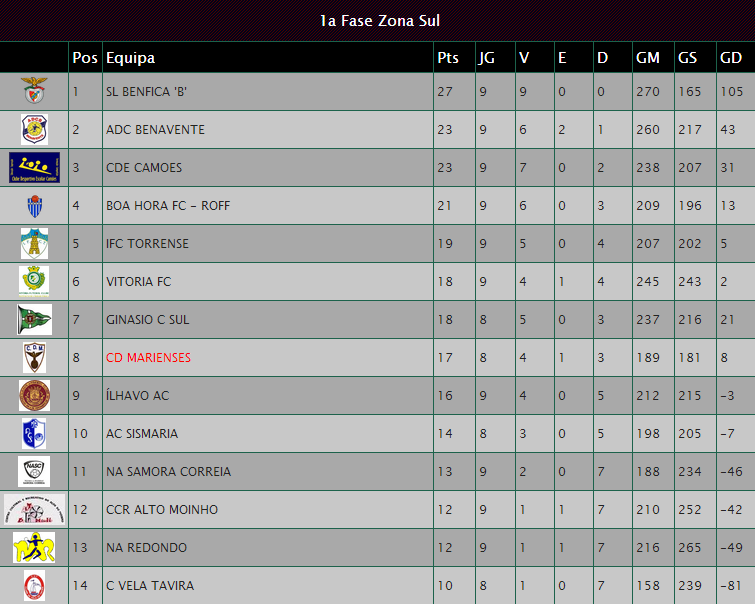 NA Redondo 25-32 CD Marienses - Ver ficha do jogo AQUI