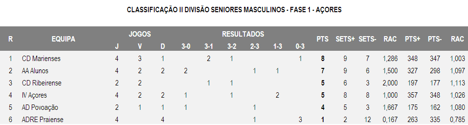 Clube Desportivo "Os Marienses" 3-1 Clube Desportivo Internacional Volei Açores (25-23/25-21/11-25/25-12)