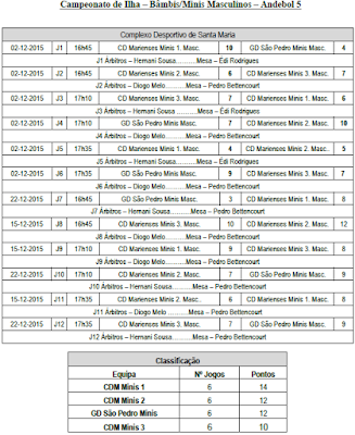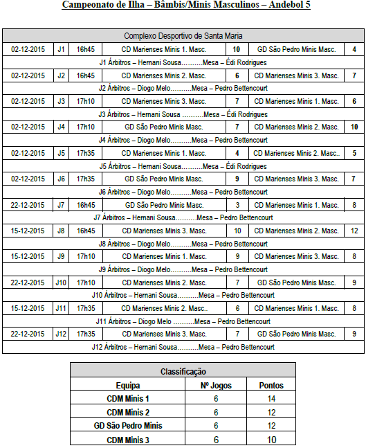 31 Jan. - 18h00 - Campeonato Ilha - Andebol - CD Marienses Inic. M. x CD Marienses Inf. M.