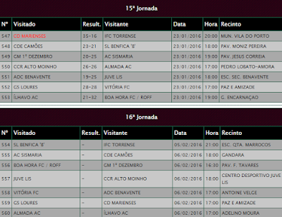 30 Jan. - 18h00 - Taça Portugal 1/8 Final - Andebol - CD Marienses x AC Sismaria - SM