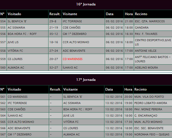 21 Fev. - CD Marienses 22-27 SC Horta