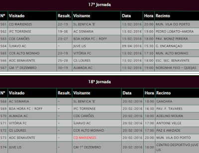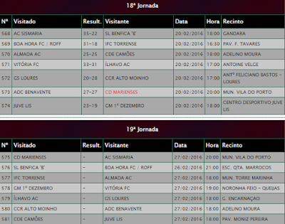GD Gonçalo Velho 17-0 CD Santo EspíritoAgenda Desportiva: 20 e 21 de Fevereiro de 2016.