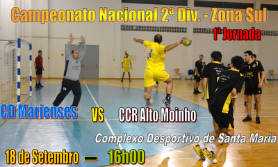 Com o objectivo definido de lutar pela manutenção no segundo escalão do andebol nacional, a equipa sénior masculina do Clube Desportivo "Os Marienses" recebe em Santa Maria o CCR Alto do Moinho. O jogo é referente à jornada inaugural da prova e terá a particularidade de marcar o regresso dos irmãos Melo ao clube de formação bem como a estreia de Hugo Correia (Ex. Almada AC) com as cores do CDM.