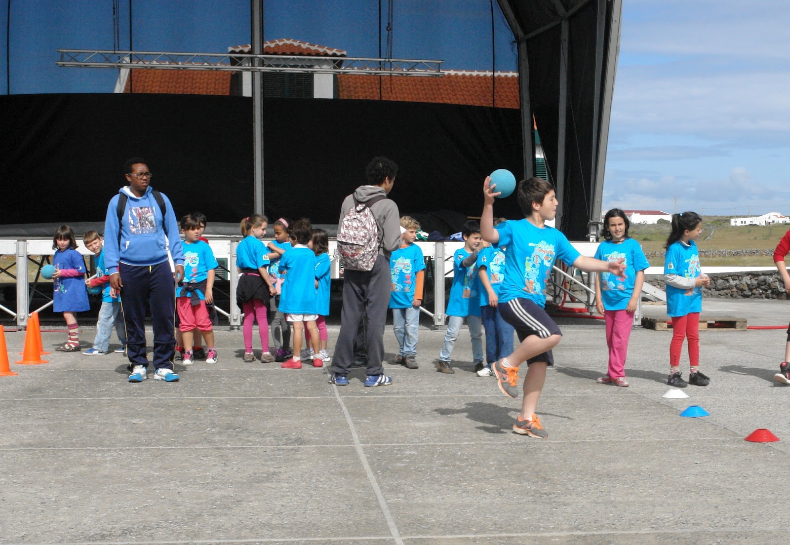 no Mega Encontro de Andebol numa organização da Associação de Andebol da Ilha