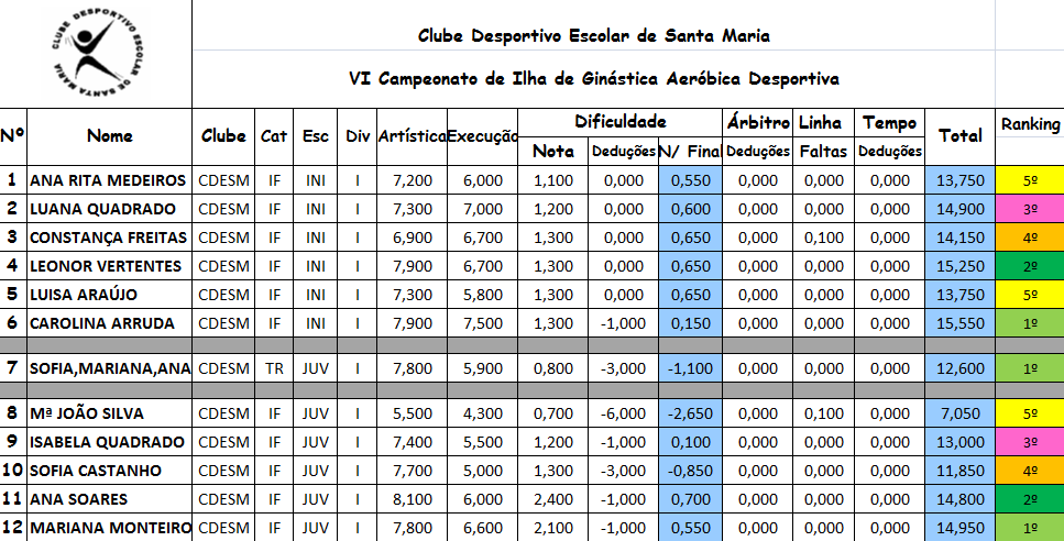 Realizou-se na tarde deste domingo, a XIII Prova Local de Ginástica Aeróbica, que na sequencia dos resultados obtidos, as atletas classificadas nos três primeiros lugares dos escalões de iniciadas e juvenis, ficaram apuradas para o Campeonato Regional de Ginastica Aeróbica, a realizar na cidade da Ribeira Grande durante o mês de Março.