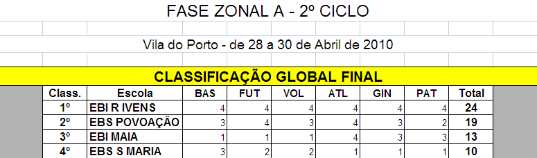 Classificação: SC Horta (9), CD Marienses (7), GD Biscoitos (5) e GDCP Arrifes (3)