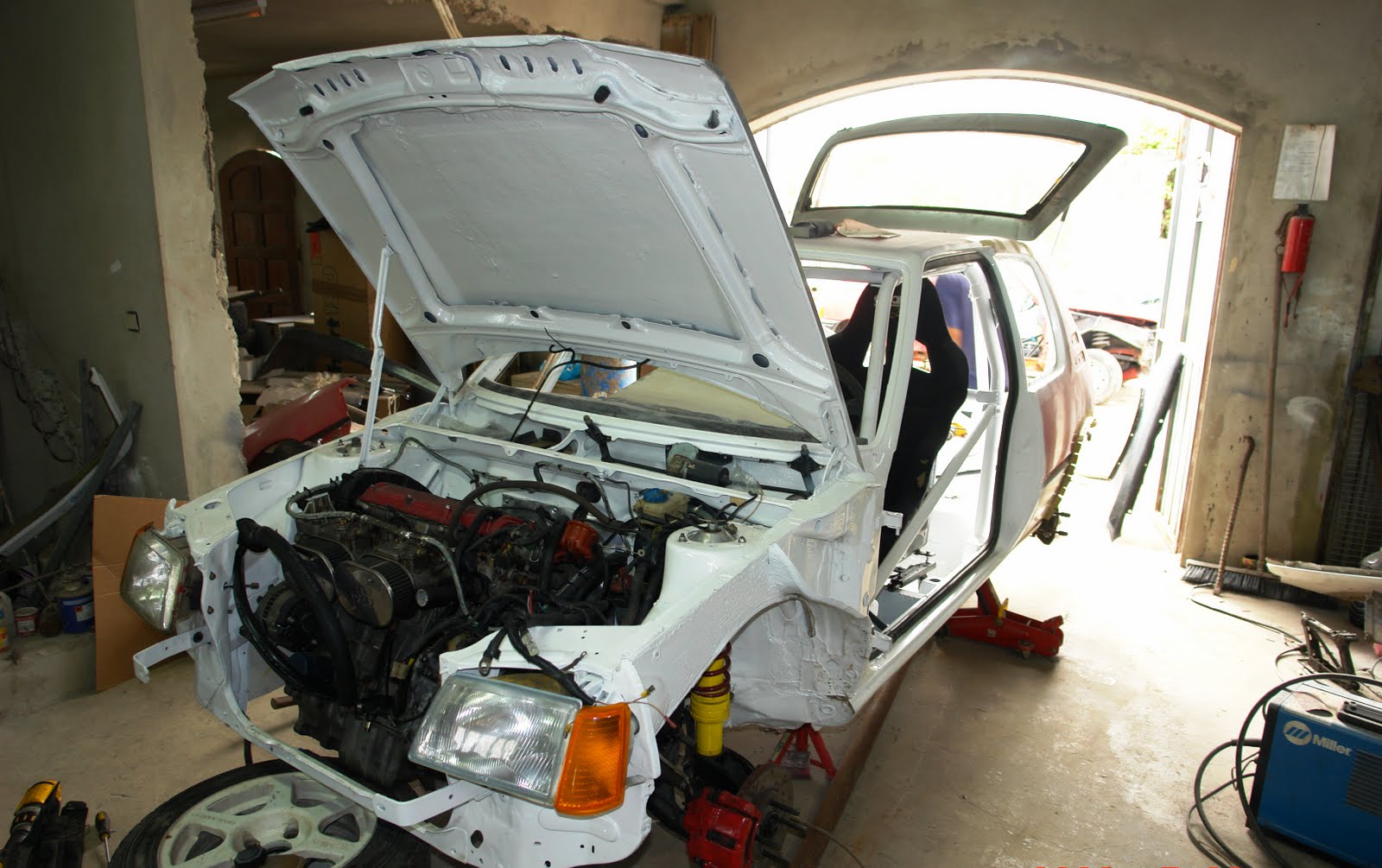 O Renault Clio 1.2 encontra-se na oficina Aerostand onde depois de alguma alterações ao nível de estética, recebe agora as últimas afinações ao nível da mecânica.
