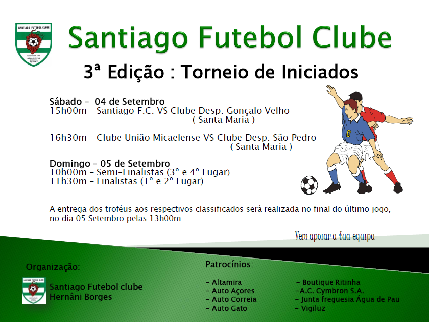 Está confirmada a presença do Grupo Desportivo Gonçalo Velho no Torneio de Futebol 11, organizado nos próximos dias 3, 4 e 5 de Setembro, pelo Santiago Futebol Clube.