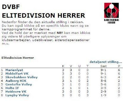 Realizadas que estão as duas primeiras jornadas da liga dinamarquesa de voleibol, o Middelfart Volley Klub reparte a liderança com os actuais campeões nacionais (Marienlyst).